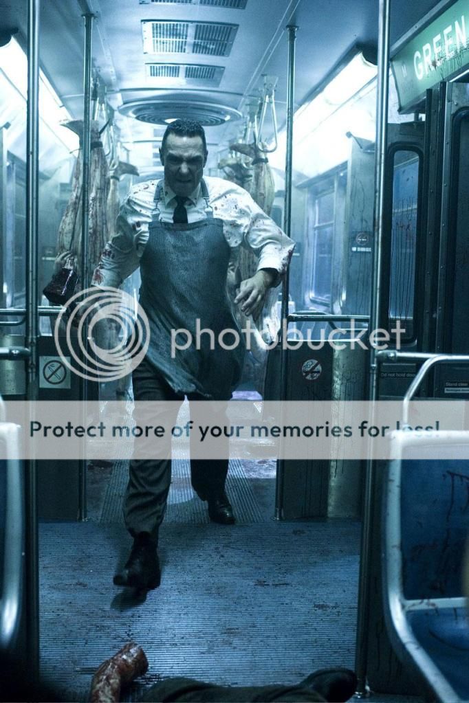 Mon Avis : MIDNIGHT MEAT TRAIN est adapté de l’excellente nouvelle "Le Train De L’Abattoir" extrait du BOOK OF BLOOD de maître Clive Barker. Bien qu'il y aie une photographie très soignée, le film est une adaptation pour le moins ratée d'une des histoire que j'avais adoré du livre. La mise en scène trop tape-à-l’œil ne correspond pas à l’univers à la fois poétique et torturé de Barker. L’idée de l’introspection dans les bas fond de la ville est particulièrement intéressante mais malheureusement rapidement délaissé au profit de scènes gores dont la mise en scène façon clip et la conception à grands renforts d’effets numériques sont totalement en désaccord avec l’écriture brut et sans concession de Clive Barker. Il aurait fallu que les scènes de tueries soient faites sans CGI, qu’elles soient moins complaisantes et plus inspirées. Ce film souffre d’une réalisation trop démonstrative, qui cherche à faire dans le sensationnel au lieu d’embarquer le spectateur dans un univers cohérent et angoissant (ce que faisait si bien la nouvelle). MIDNIGHT MEAT TRAIN est un film dénué d’ambiance, de nuances et de subtilité. Idem pour les personnages, dont la psychologie est à peine survolée, alors que Barker accorde une énorme importance à ses personnages, leurs états d’âme et leurs angoisses si mal retranscrit en ce qui concerne Leon Kaufman. Le scénariste n’a pas su saisir l’essence du BOOK OF BLOOD et nous raconte une histoire, tout ce qu’il y a de plus banale, avec des personnages auxquels on ne s’attache pas (d’autant plus qu’on ne comprend pas les motivations du héros) ainsi qu'un final trop rapide et par corollaire mal amené. Soulignons tout de même que Vinnie Jones est particulièrement charismatique dans un rôle plus intéressant qu’il n’y paraît (si seulement le scénariste ne s’était pas contenté de le survoler!!!). Conclusion: il faut lire Clive Barker même si cette réalisation de Kitamura reste la meilleur que j'ai pu voir à ce jour du mettre de l'horreur.