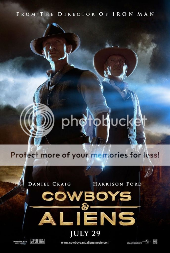 Mon Avis : Cowboys & Aliens, c'est le genre de film que tous les gamins ont rêvé étant petit, en jouant avec des jouets en plastique. En même temps ce genre de cross over délirant, sur le papier ça a quelque chose de jouissif et de délirant. Après on voit que c'est Favreau à la réalisation, là on peut commencer à avoir peur. Il n'a clairement pas le potentiel pour assurer la mise en scène d'une oeuvre potentiellement aussi jouissive. Il aurait fallu quelqu'un comme Raimi (mais bon le pauvre ne peut pas être partout). Parce que si le premier IRON MAN était parfait c'était grâce à la performance de Robert Downey Jr que grâce à la mise en scène ou même au scénario. Ensuite le 2 à part une scène de procès, qui fait ressortir la mégalomanie délirante de Tony Stark... c'était à jeter, la faute à des scènes d'action débiles, sans imagination. Donc la grande question était, Favreau étant un mec qui veut bien faire, va t'il réussir à insuffler du charme à son film en débit de ses défauts? Au début on pourrait penser que oui, Craig ultra charismatique, amnésique, badass, ancien desperado débarque en ville avec un bracelet énigmatique autour du bras. Damned le rêve quoi. Je veux dire on peut s'attendre à un film jouissif au possible, une sorte de Duke Nukem au temps des cow boy. Alors après on voit le casting défiler, Paul Dano, Sam Rockwell, Ford… Des gens biens, sauf que Ford ne sait plus jouer depuis bien longtemps, et Dano et Rockwell sont réduit à des seconds rôles pour faire le nombre, des peureux, ultra chiants au destin éminemment prévisible. Parce que attention il ne faut pas s'attendre à une seule fois surpris durant ce film. Donc le début du film se laisse regarder, puis s'en suit des incohérences à n'en plus finir, des rebondissements aberrants tellement ils sont improbables, prévisibles et d'une connerie sans nom. Ensuite la mise en scène livre très vite ses limites, si le premier quart d'heure est bien foutu le reste est vraiment à la ramasse, et ça n'arrive pas à combler une écriture poussive, des personnages creux, des complexes pères/fils à la mord moi le noeud. Ridicule à souhait! Et c'est cousu de fil blanc, et pas fun pour un sous. Honnêtement il n'y a pas grand chose à sauver de la débâcle. Le film n'assume pas son statut de grand n'importe quoi attendu, et le côté dramatique est juste hilarant, on ne peut rien faire pour lui en somme. En plus on se tape la petite musique triste et blablabla la morale en plus. Et ceci sans parler de toute la niaiserie qui entoure le personnage de Craig. Et les flash back qui ont une photo tellement dégueulasse etc. Bref COWBOYS & ALIENS plus qu'une grosse arnaque.